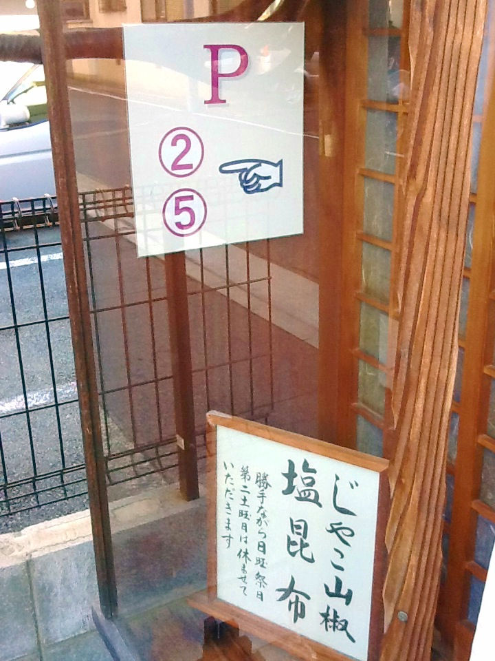 店の前の衣の棚通りは北向き一方通行ですので、店を通り越していただいてすぐ横にございます。