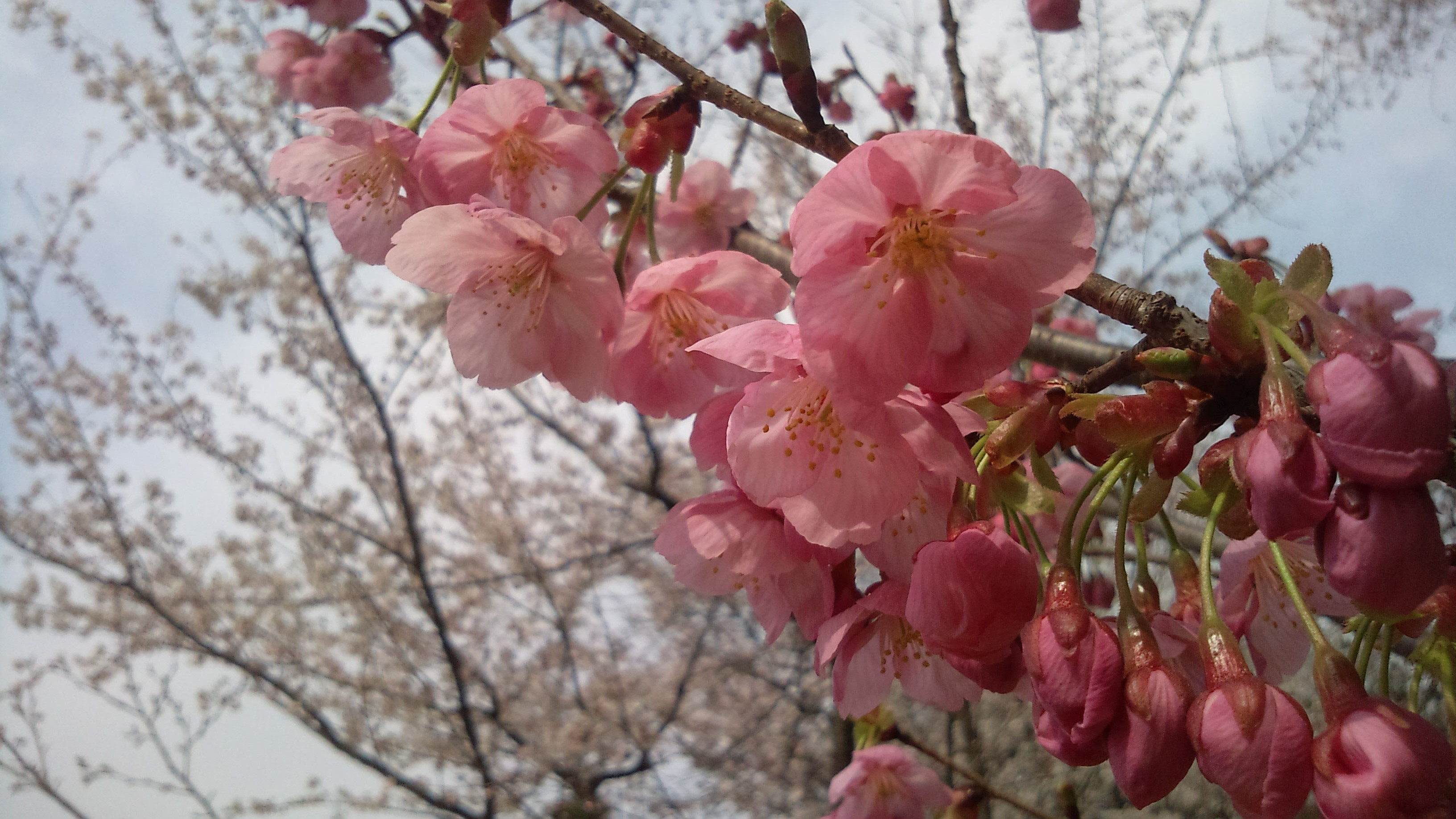 こちらは『陽光桜』という桜のようで、赤みがかっており後ろのソメイヨシノの淡いピンクとの対比がとてもキレイでした。